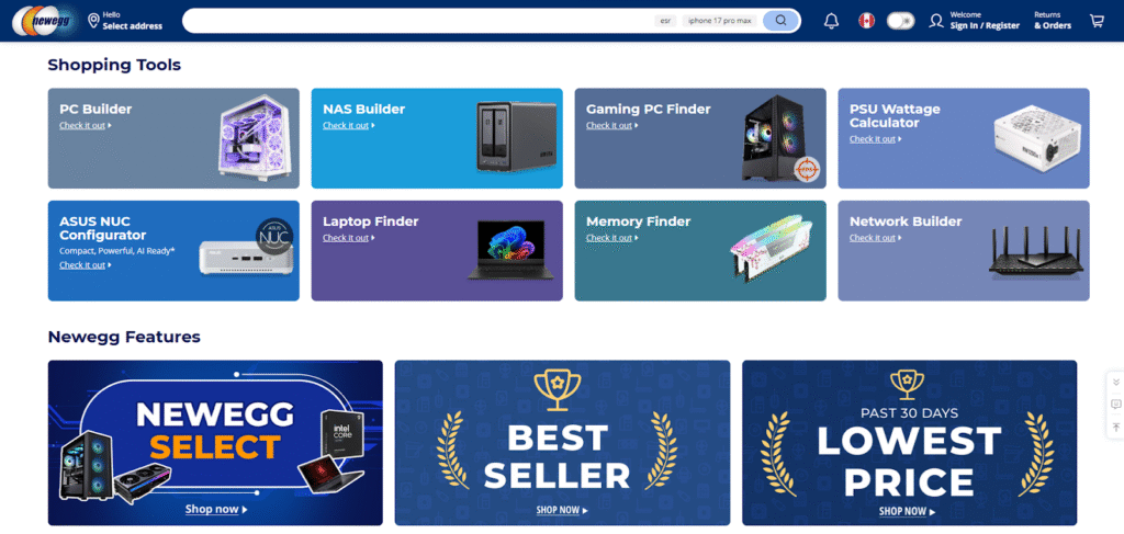 The website’s layout is designed for convenience — allowing you to browse, compare, and buy effortlessly. Whether you’re looking for a budget laptop or a high-end gaming rig, Newegg makes finding the right product simple.